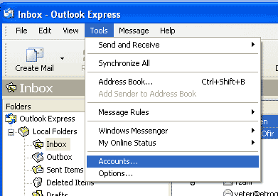 click the Tools in the menu bar and click Accounts. When the Internet